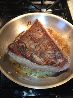 The completed steak. The steak was seared off on the stove top for a total of about 6 or 7 minutes and then finished in the oven for a few more minutes.